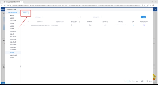 2、点击【新增用户】按钮,填写“用户信息”相关信息,填写完成后,点击【修改保存】按钮即用户信息新增成功。